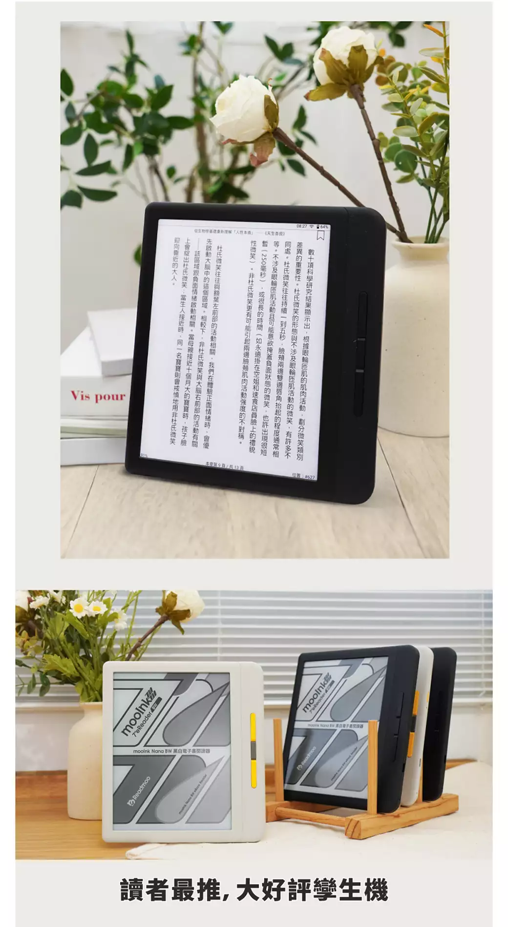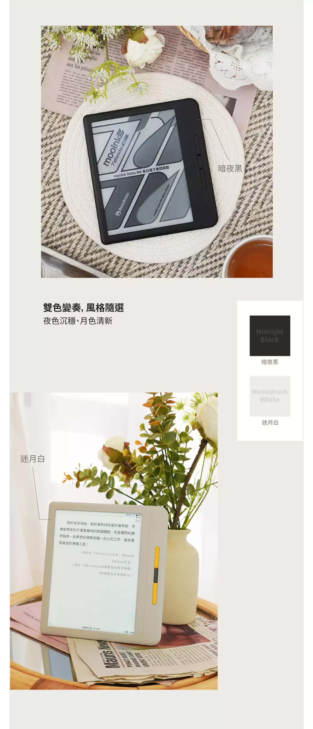 讀墨 mooInk 7 吋 Nana BW 黑白閱讀器 - 暗夜黑