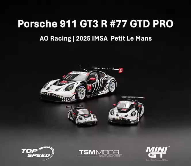 (預購)Porsche 911 GT3 R #77 AO Racing 2025 IMSA Petit Le Mans - 左駕