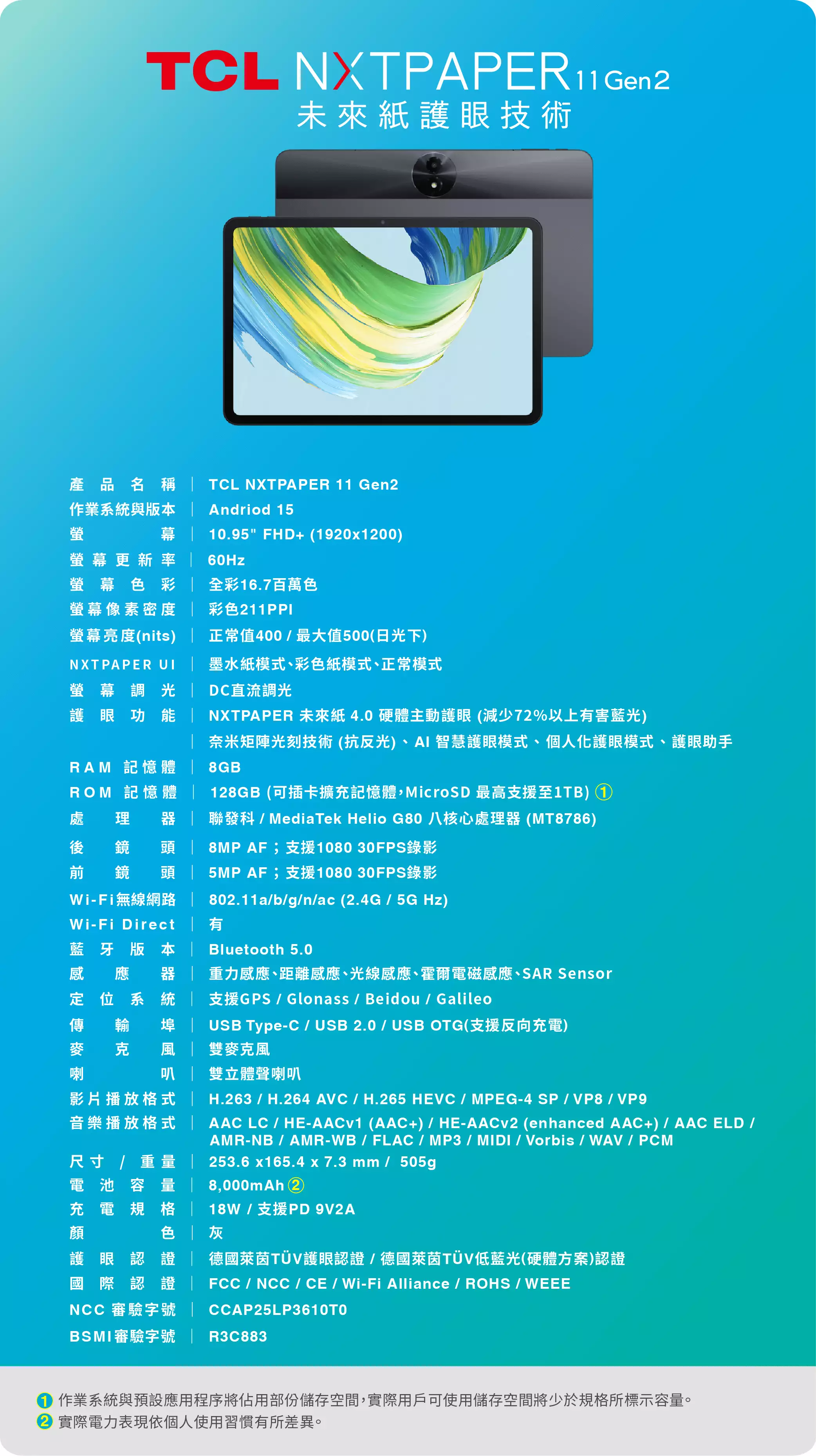 TCL NXTPAPER 11 Gen2 護眼平板 (保固期限1年) + 雙軌可拆式皮套
