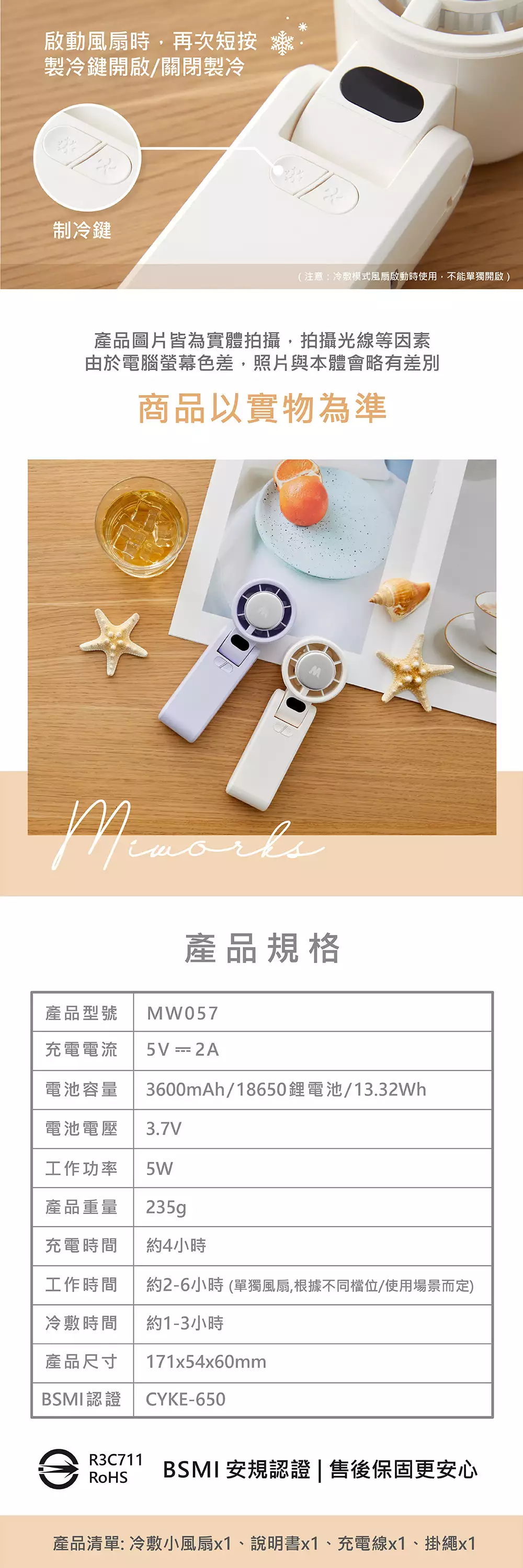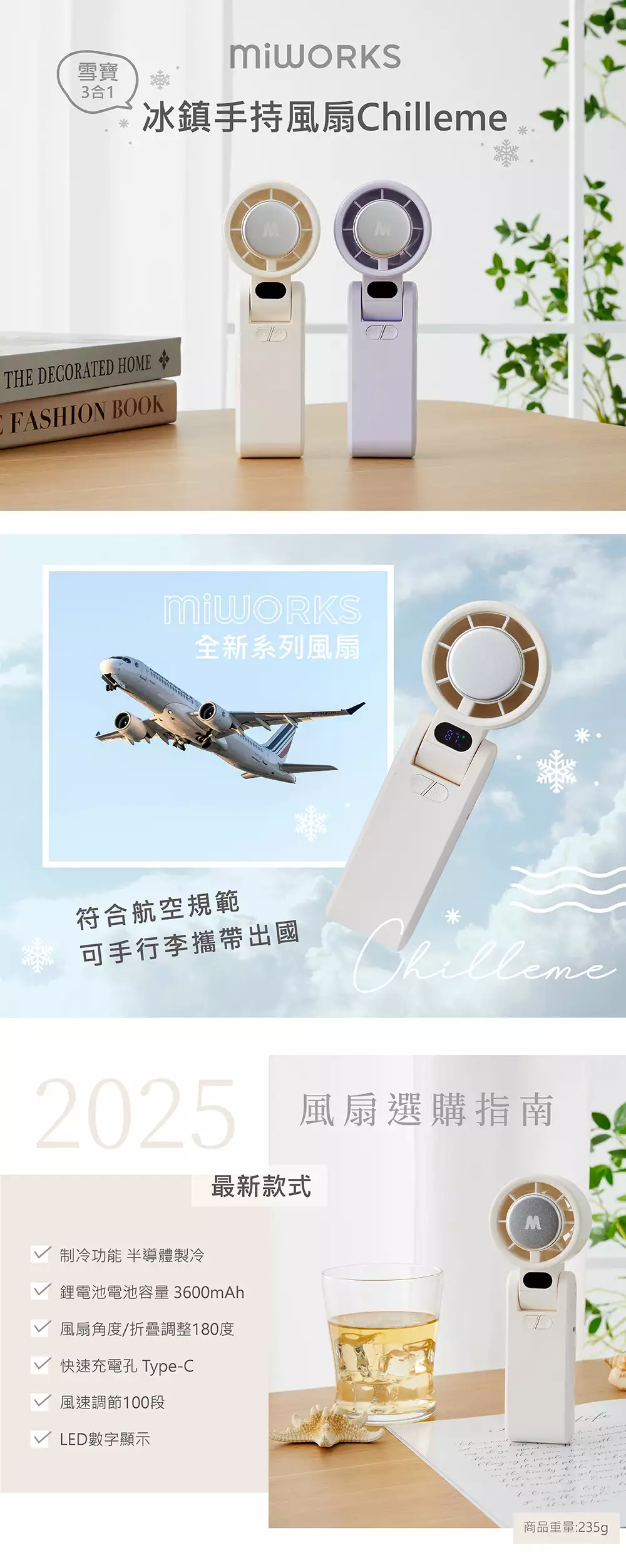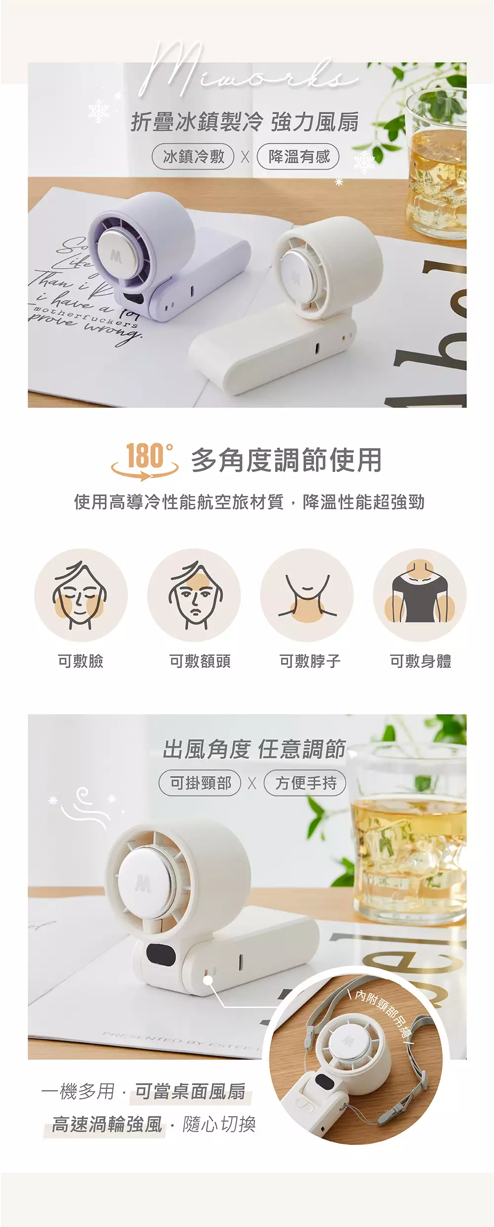 【米沃】雪寶三合一冰鎮手持風扇 - 白 / 紫